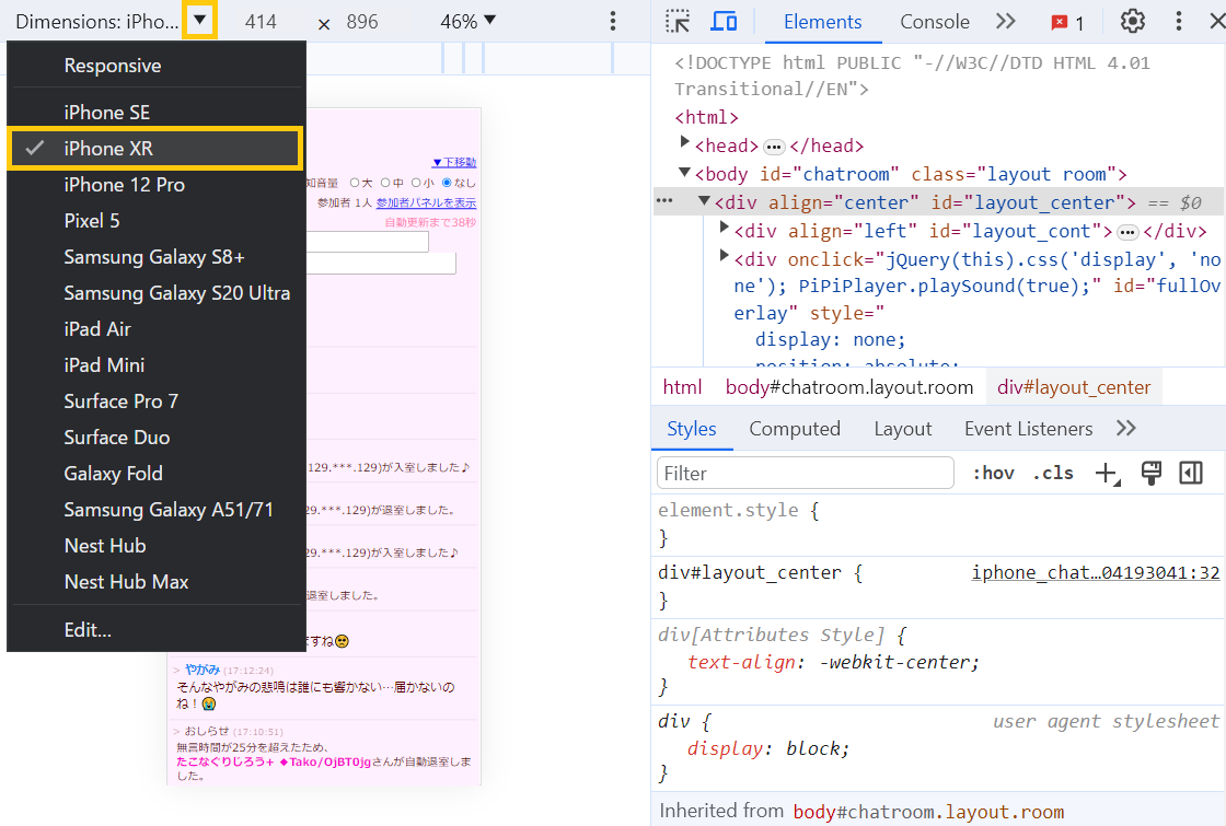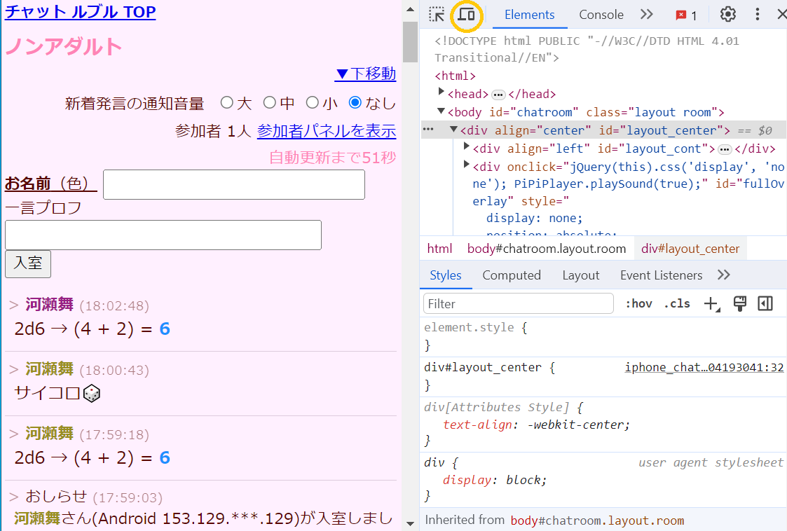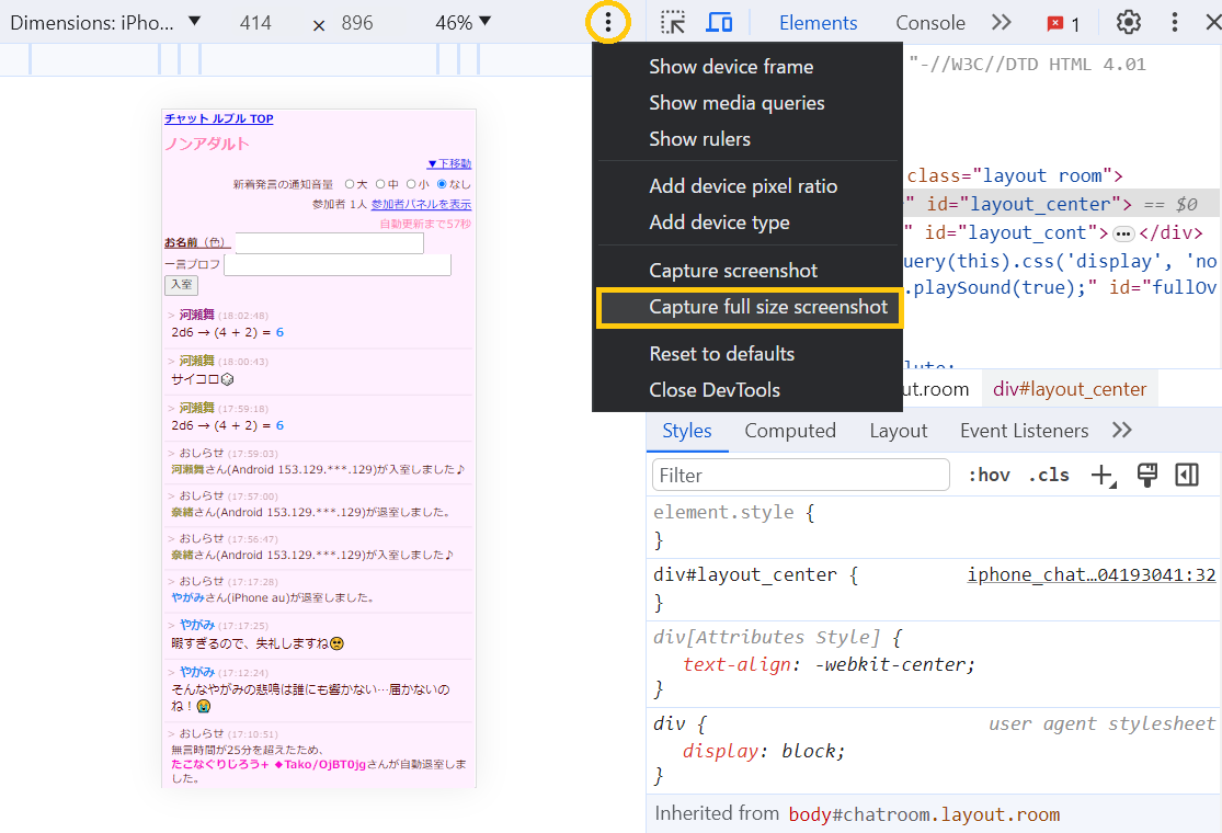 右側の開発者ツール画面を出して